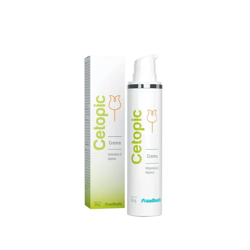 • Cetopic es una crema con vitamina C al 8% que brinda beneficios antioxidantes y despigmentantes, disminuye la resequedad y el fotoenvejecimiento.